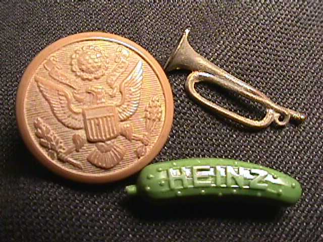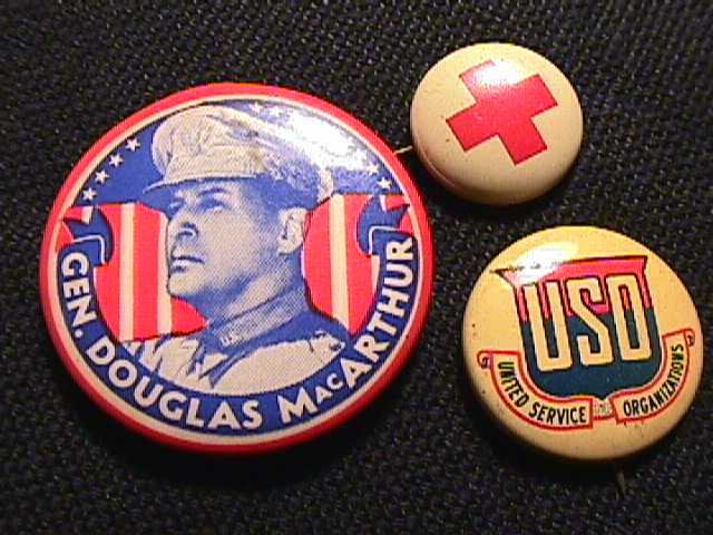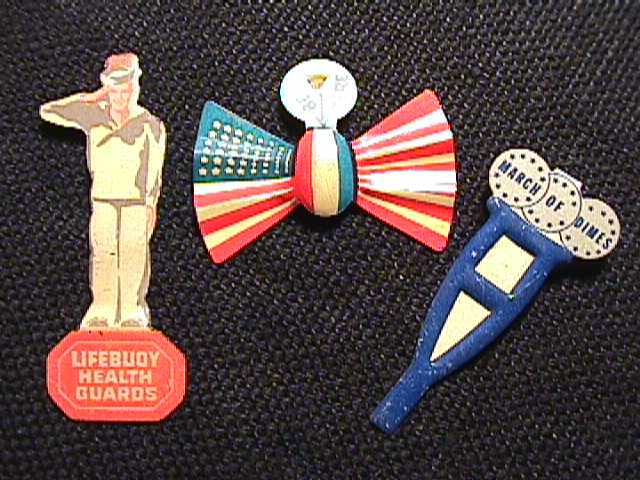 wartime pinbacks, original political pins, old carnival trinkets and charms,