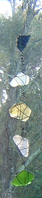 Wired Collection Artistic suncatcher made of worn glass (like sea glass but thicker) and wire. Approximately 24 inches long. $25