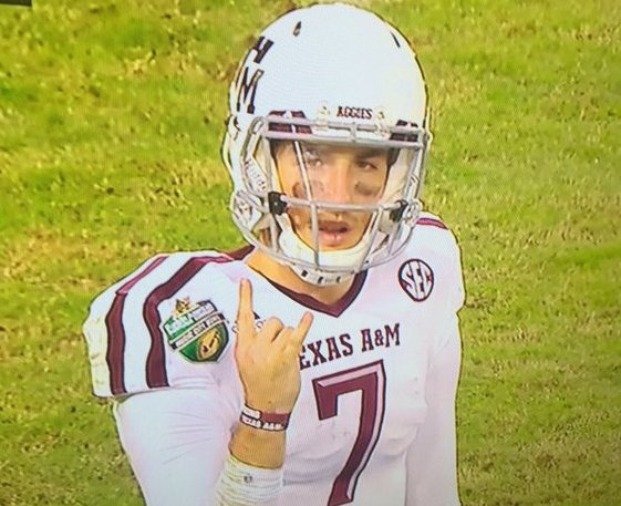 Aggie back-up QB Jake Hubenak must have got his signs mixed up after coming in for injured Trevor Knight... #HookEm