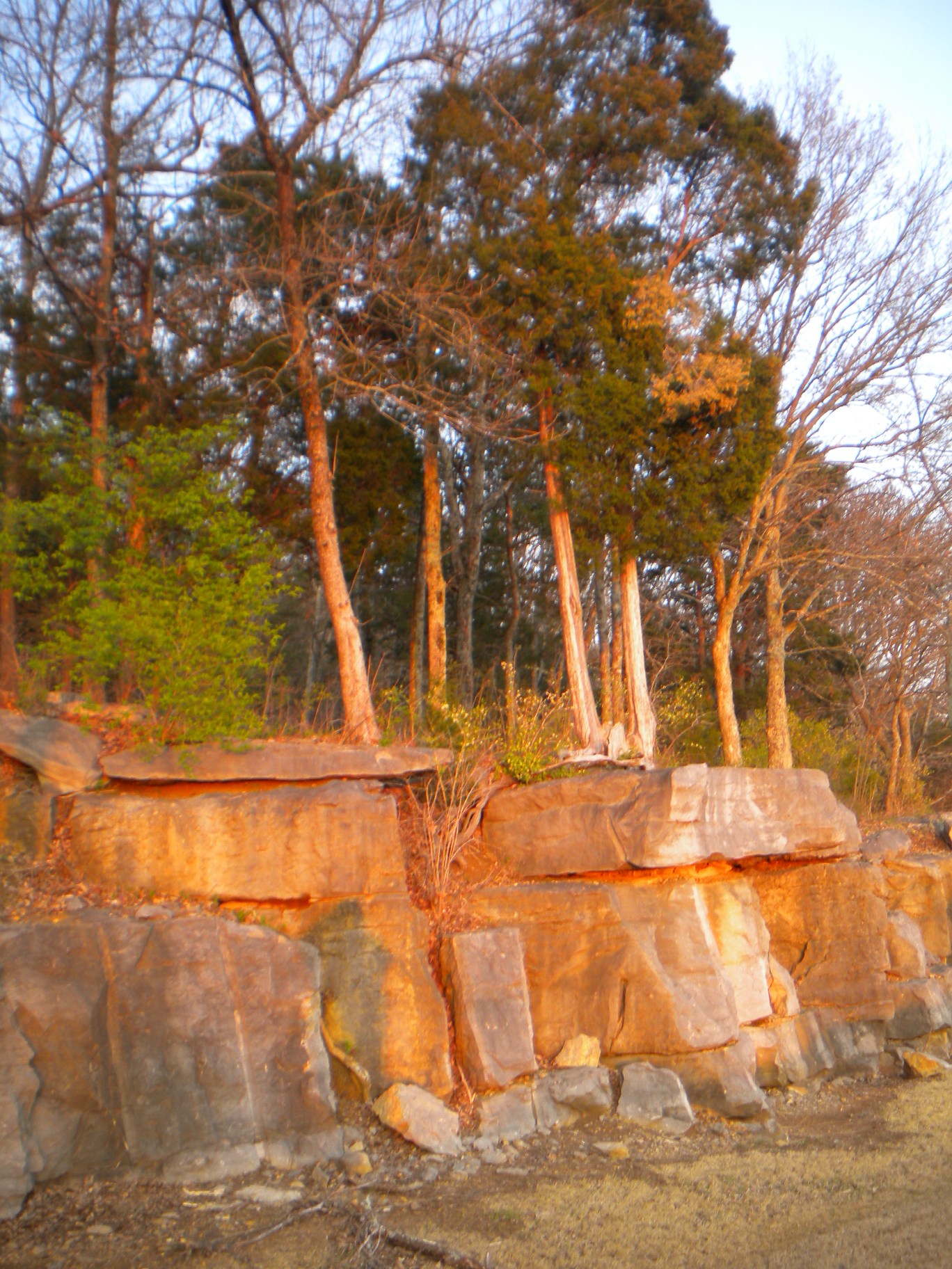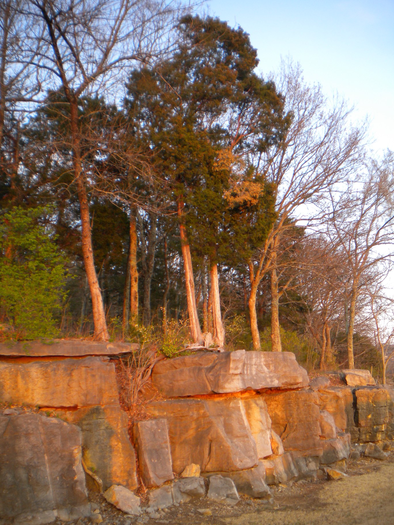 When I went back in (just as the sun was starting to set), I realized the ledge runs along most of the first part of the trail and if you get off the trail you can follow it and even do a little rock climbing! Not anything very technical, as you can see... although it did cross my mind how bad it would suck if I fell!