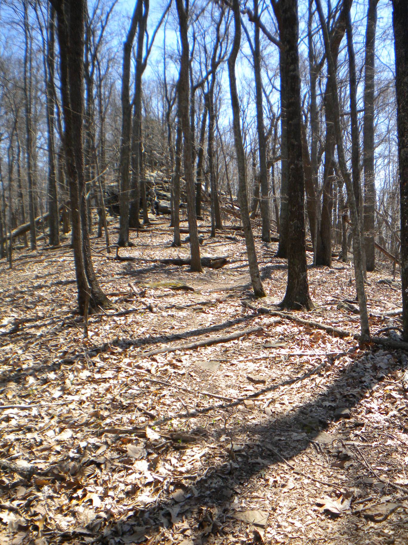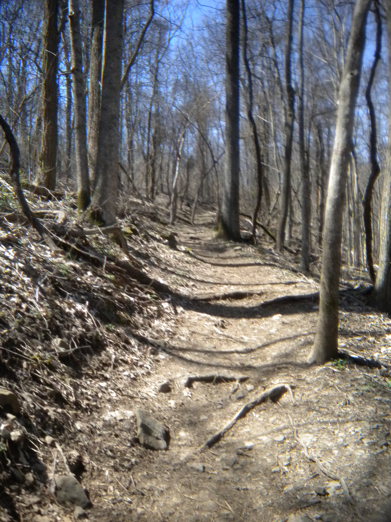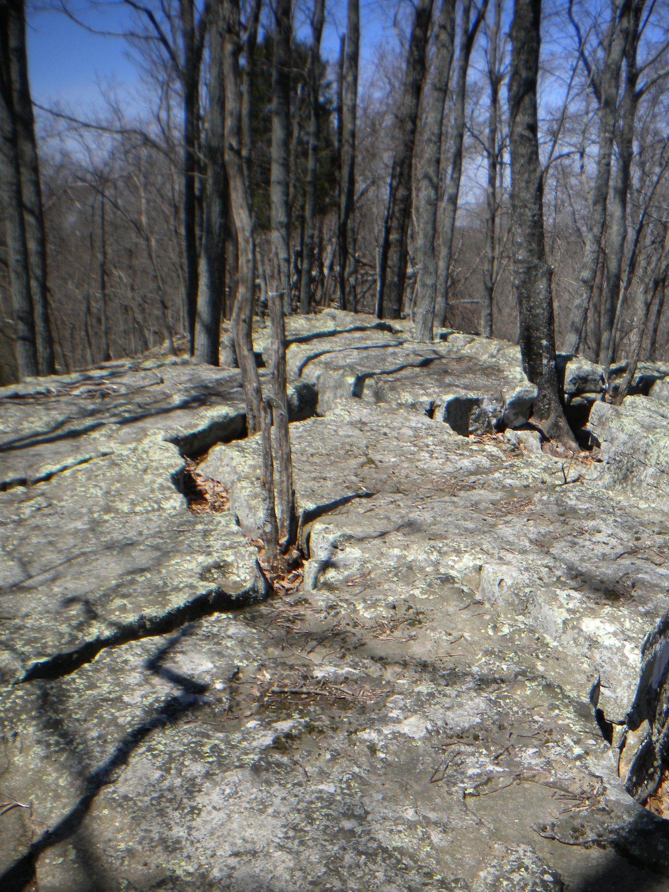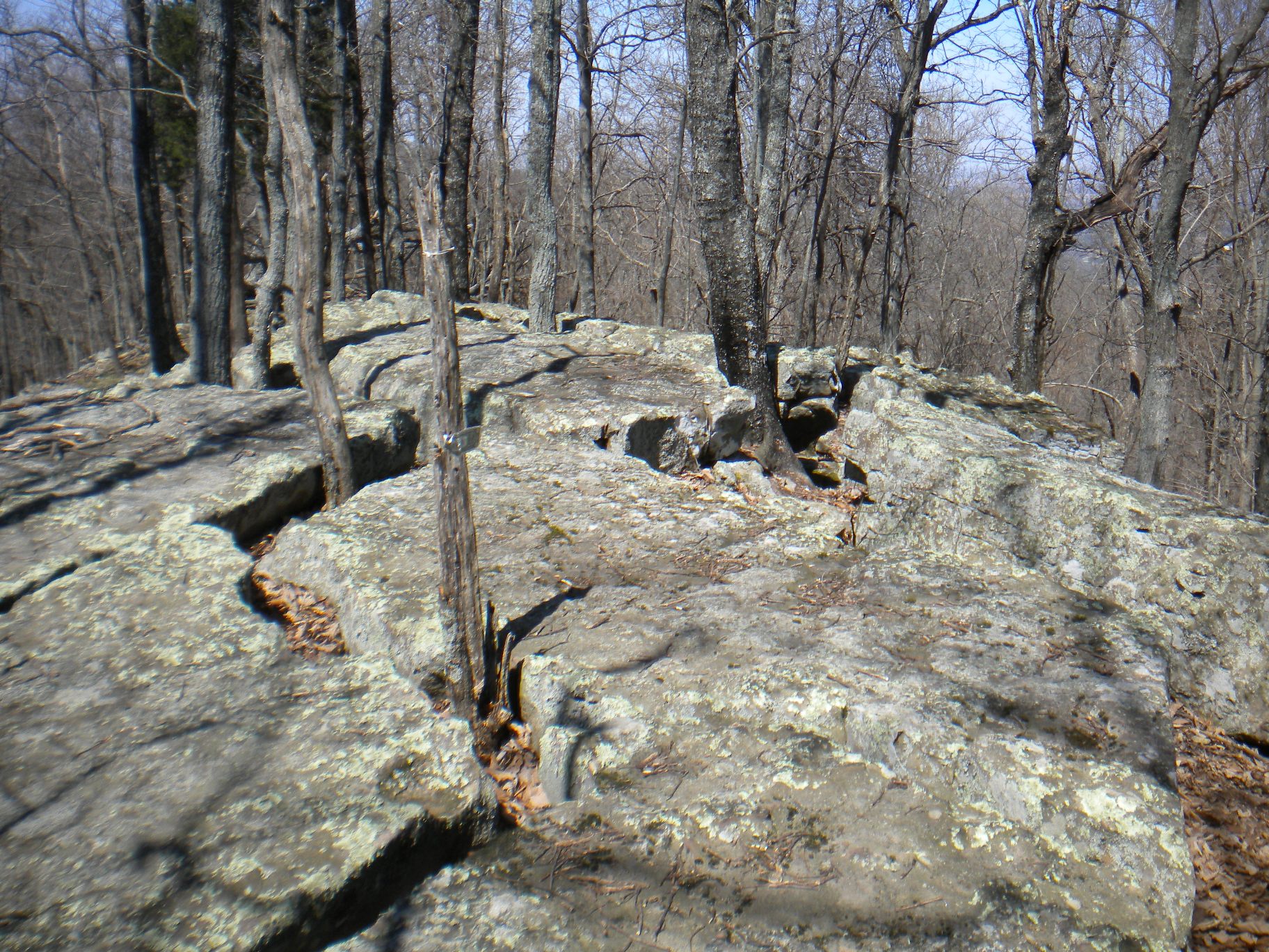 Back on my way on the Stone Cuts Trail, I see another one of those Space Shuttle markers that must have been leftover from some kind of trail run race. I only saw maybe four or five of these on all the trails I explored and never in any kind of related vicinity - maybe it was actually some kind of points station. The entry to the Stone Cuts is on the right (the blue trail is the Stone Cuts Bypass which is a flat trail on the mountain side.