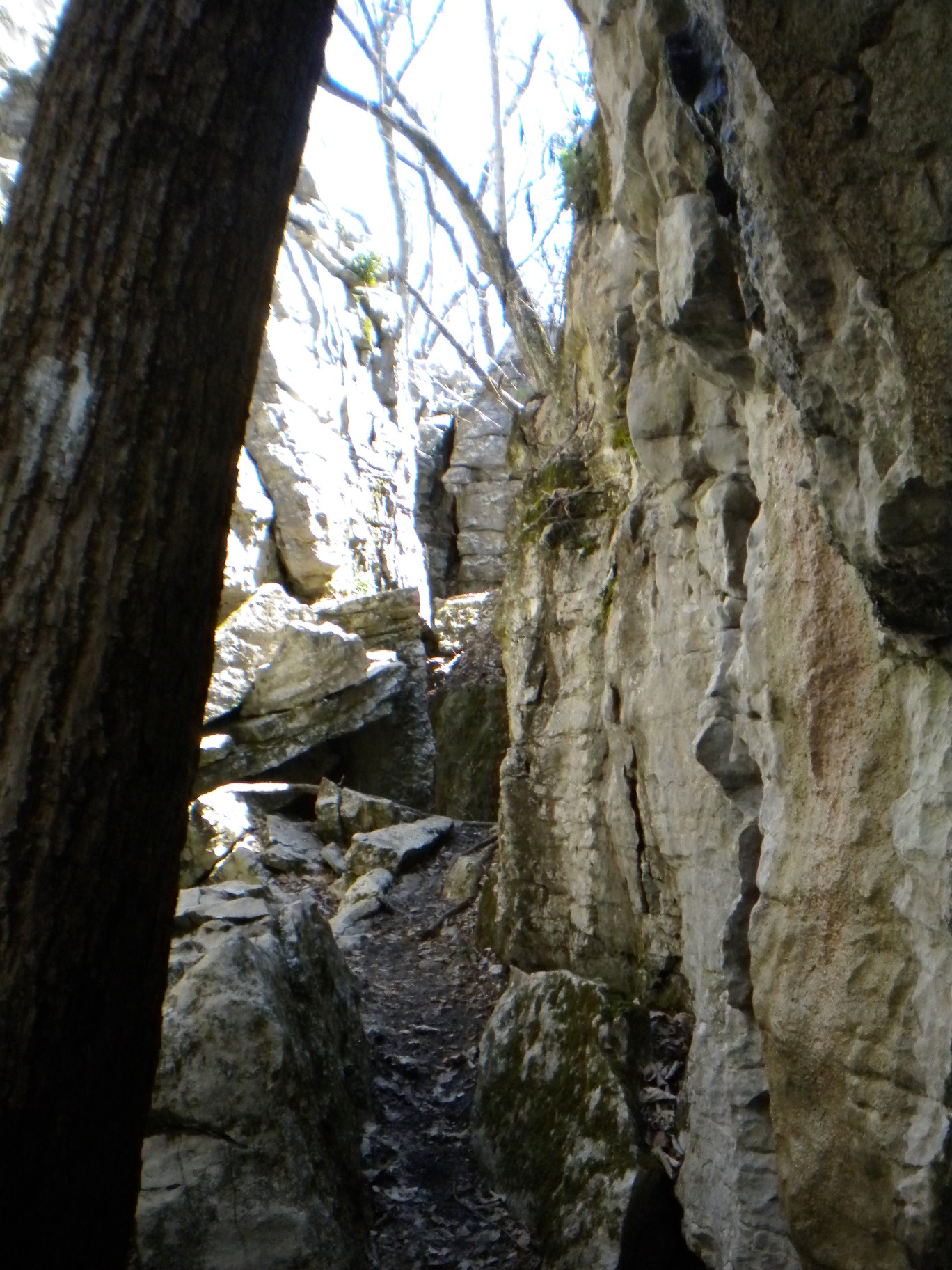 There were a few smaller tunnels and some caves that were to the side and not part of the route. You could spend a lot of time here just exploring. And there is plenty of bouldering... I really wanted to try my hand but was alone and on a schedule. You enter the last tunnel as a crevace jogs through a right angle turn and to get out you have to climb up a bit of rock. An amazing place that I must do some geological research on - I have seen very little on any of the trail websites about the Stone Cuts.