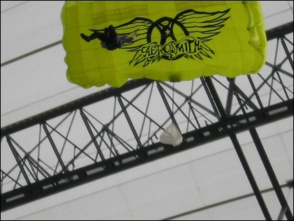 Original plans involved Aerosmith pretending to parachute in, hence why they were in jumpsuits.