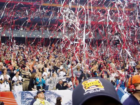 I remember being so shocked when all the crowd held up seat cards, flanking the stadium in flags,