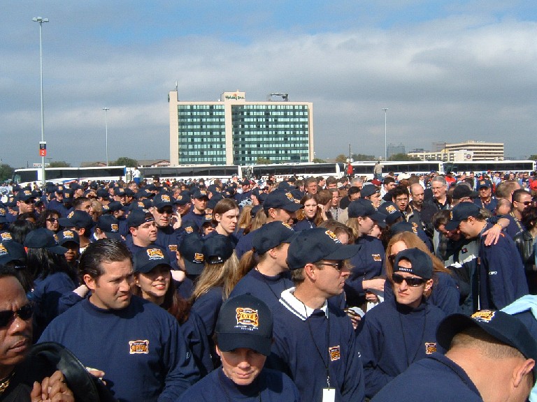 This is 250 of us, all in our shirts and caps, waiting in the security lines - we actually had it easy...