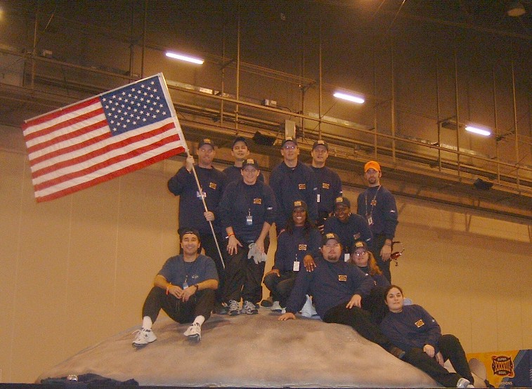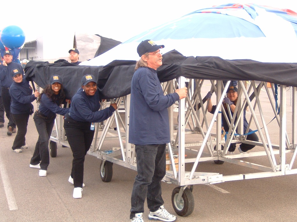 I remember banging on the stage to get our moon man to come down so we could strike the stage and go.