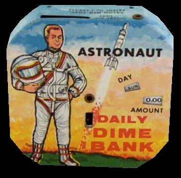 I collect tin toys, wind-up rockets and space capsules, board games, and action toys (helmets, badges, watches).