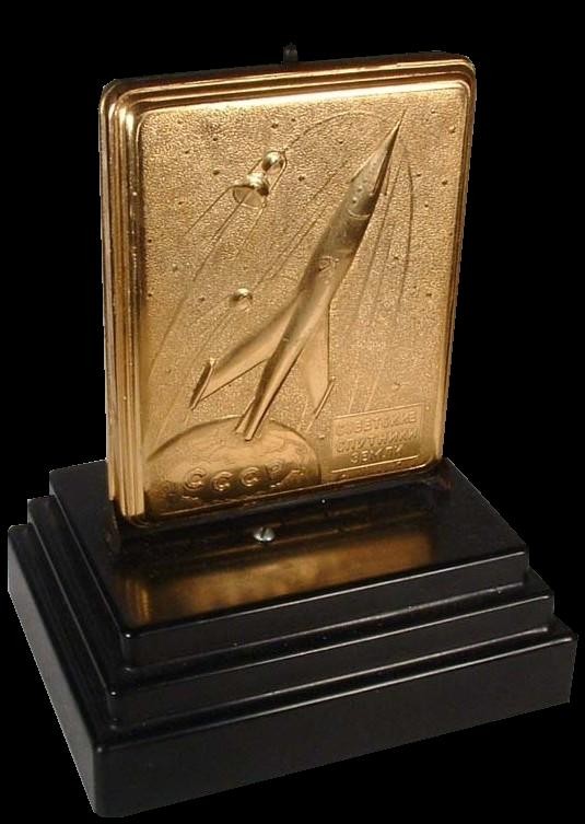 Russians were very good about commemorating every single success of their space program. Brilliant replicas of various monuments were crafted to desk size and given out as awards. Items made included Cosmonaut Busts, Pen and Cigarette Holders, Space Monument models, Space Lamps, Clocks, and the numerous commemorative Desk Models.